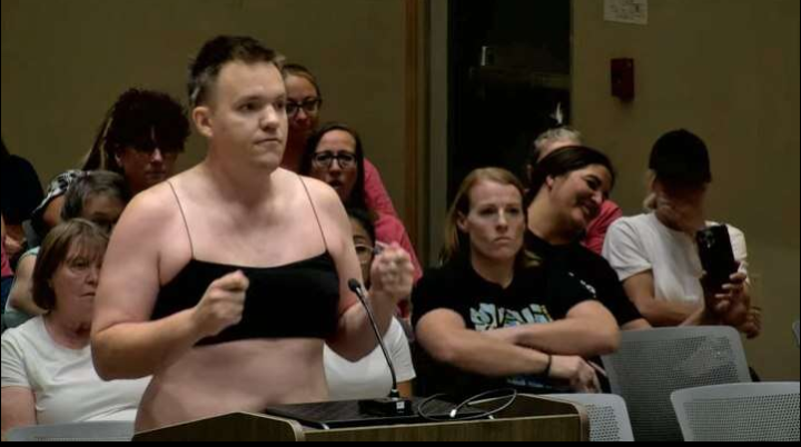 In a unique protest, Latham stripped down to a revealing black crop top with spaghetti straps and short jean shorts, arguing that such attire was inappropriate for a school board meeting. He asserted that a dress code allowing such clothing in a classroom would hinder the creation of a safe and distraction-free environment.